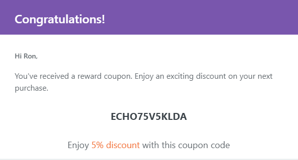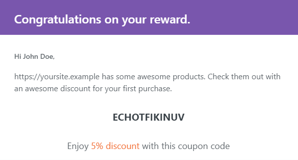 First, customize the settings for the rewards notification email, which will be sent to both the referrer and the referee. Whenever the referee makes a purchase using the shared code, the referrer will receive a coupon via email.